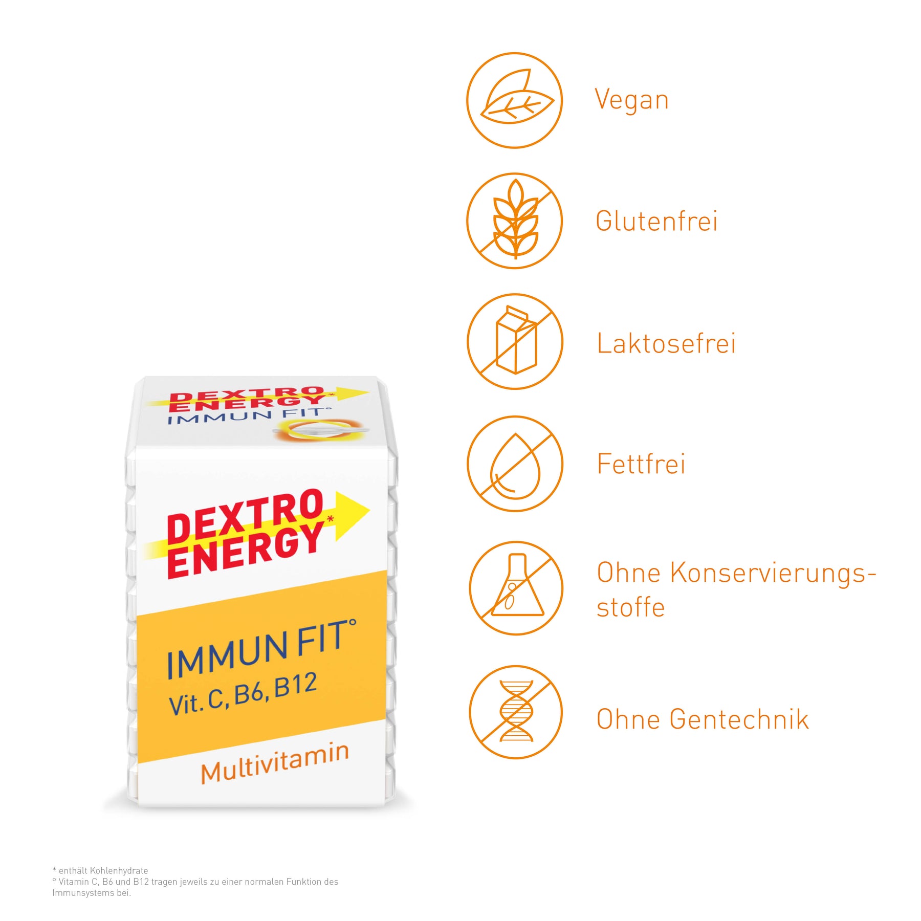Dextro Energy* Immun Fit° – dein Traubenzucker mit 10 Vitaminen