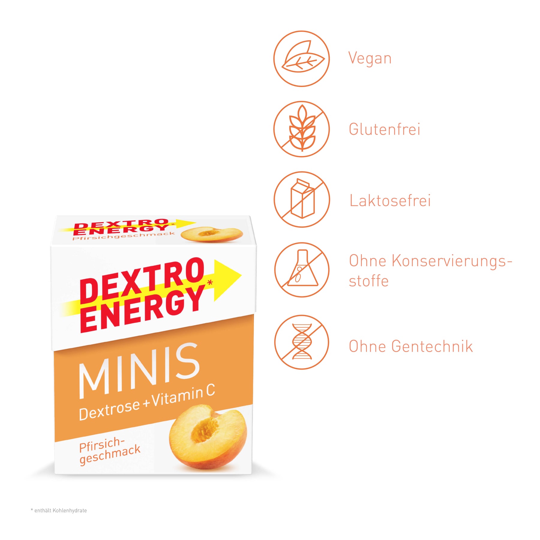Unsere Mini-Traubenzucker mit Pfirsichgeschmack schmecken wie gerade vom Baum gepflückt – während sie dich mit allem versorgen, was du für deine nächste Aufgabe brauchst.